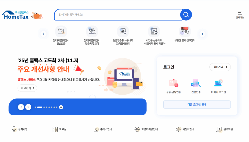 홈택스가 입력된 내역을 바탕으로,